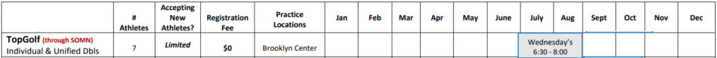 The TopGolf schedule for the 2025 season is posted in the calendar below